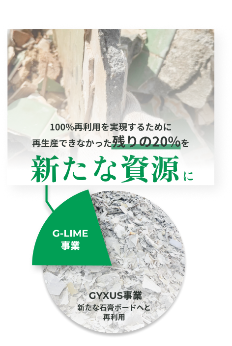 しかし未選別・異物付着の廃石膏ボードは、従来技術では再利用が困難とされてきました。G-LIMEは、その“再資源化できない領域”を資源へと転換する技術です。