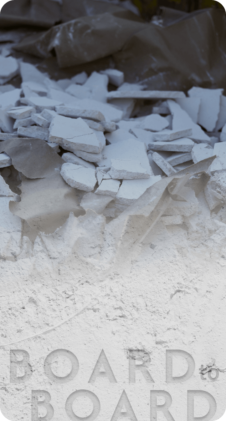 新たな石膏ボードへ - 独自技術を用いて、廃石膏ボードから新たな石膏ボードを生産。