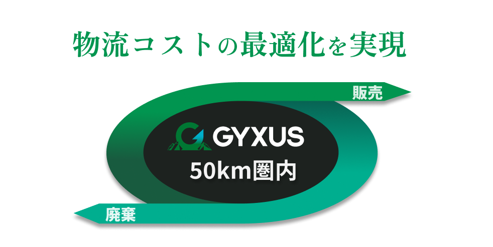 独自技術「GYXUS CORETECH」により高純度再生を実現。回収から製造・配送までを一体化することで、資源循環とCO₂削減を同時に達成します。