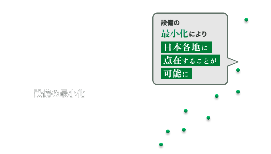 コンパクト化を実現 各都市の中に眠る廃石膏ボードを回収するためには、各都市に水平リサイクルプラントが必要です。設備を最小化することに成功しました。